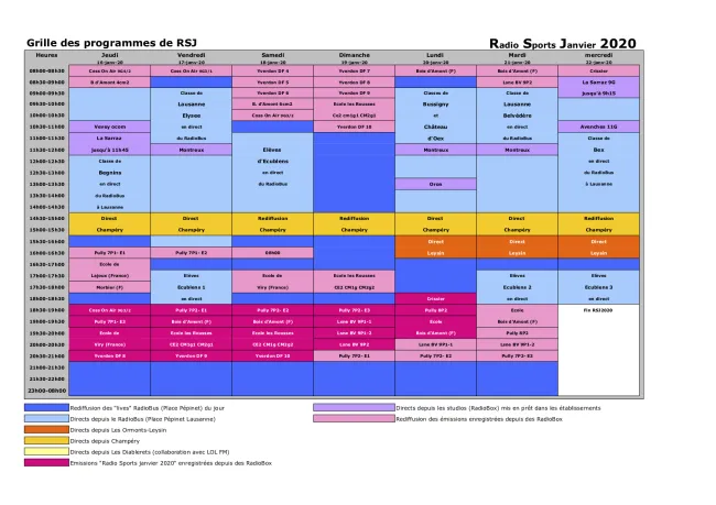 Téléchargez la grille des programmes de RSJ 2020 (RadioBus Sports Janvier 2020), version 11 décembre 2019.
